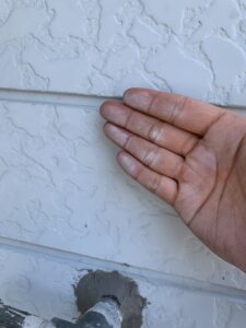 ひび割れやコーキングの劣化部分を補修。塗装が長持ちするために重要な工程です。