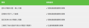 塗装会社が加入している 工事保険(建設業保険・賠償責任保険) がとても重要になります。