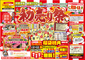 特典: ☆ご来場特典:スタバカード500円分プレゼント! ☆お見積り特典:最大商品券10,000円分プレゼント!(新規来場(お問合せ)のうえ、調査・見積依頼いただいた方) ☆ご成約特典:選べる新年お食事特典! ☆目玉特典:福袋プレゼント!~はずれなし~ 『1が出たら足場代無料!』(※工事代金110万円(税込)以上に限ります) 『2がでたら足場代半額!』(※最大足場代20万円引きまで) 『3が出たら足場代3万円値引き!』(※工事代金55万円(税込)以上に限ります)