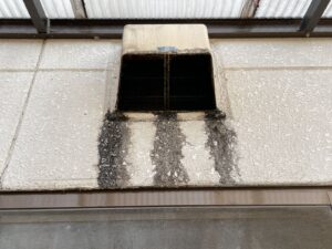 経年劣化により、色あせやコーキング材の痛み、雨漏りによる軒天の剥がれ等発生していました。