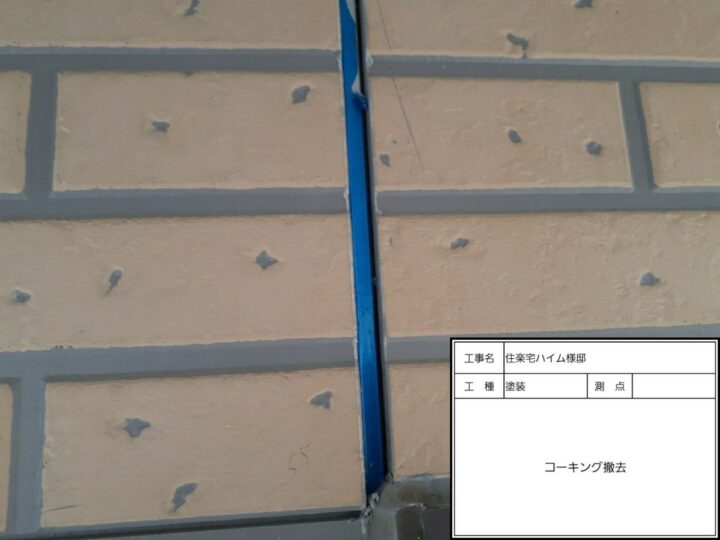 コーキングの下に貼られているのは〈ボンドブレーカー〉です。外壁とコーキングの3面接着を防ぎ、衝撃から建物を守る役割をしています。