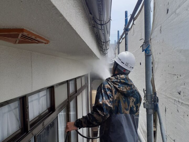 軒天は外壁と同じモルタルです。同じ塗料を使用します。